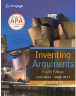 Organized around common rhetorical situations that occur all around us, INVENTING ARGUMENTS shows students that argument is a living process rather than a form to be modeled. The text's focus on invention teaches students to recognize the rhetorical elements of any argumentative situation and apply the tools of argument effectively in their own writing. Students are introduced to the basic layers of argument in early chapters, with material arranged into increasingly sophisticated topics beginning with the most obvious or explicit layers (claims) and moving to more implied or “hidden” layers (assumptions, values, beliefs, ideology). By the time they finish Part 1, your students will have a thorough understanding of argument, which they can then apply to the invention projects in Chapters 7−12. Each student text is packaged with a free Cengage Essential Reference Card to the MLA HANDBOOK, Eighth Edition.